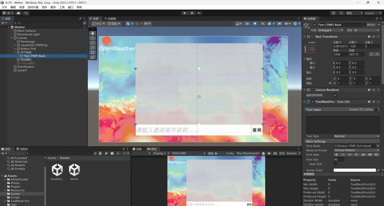 Unity调用OpenWeatherAPI查询天气