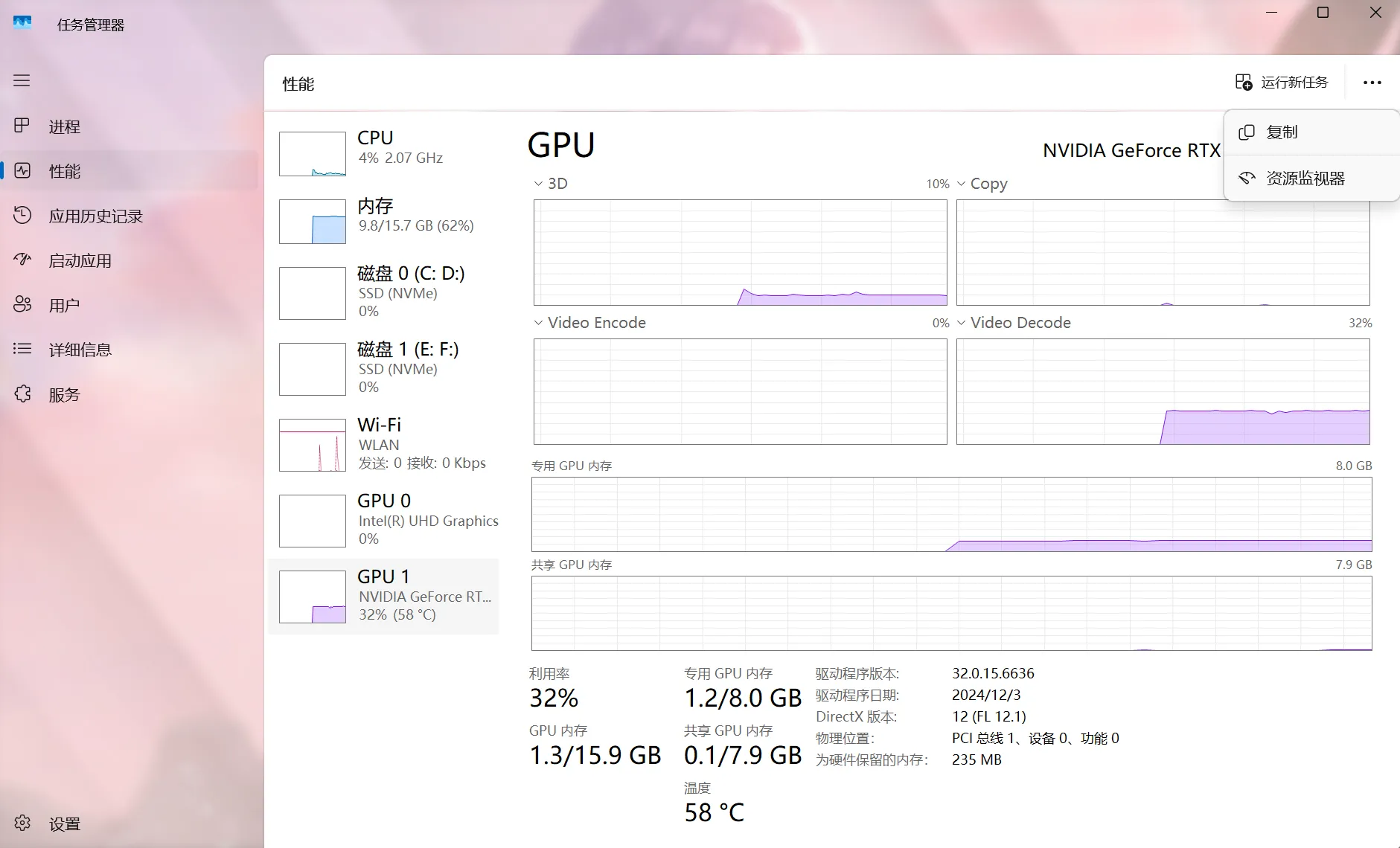 如果存在仍有进程在运行问题,则开启你的资源监视器(Ctrl+Shift+Esc下的性能页面右上角的“打开资源监视器”)